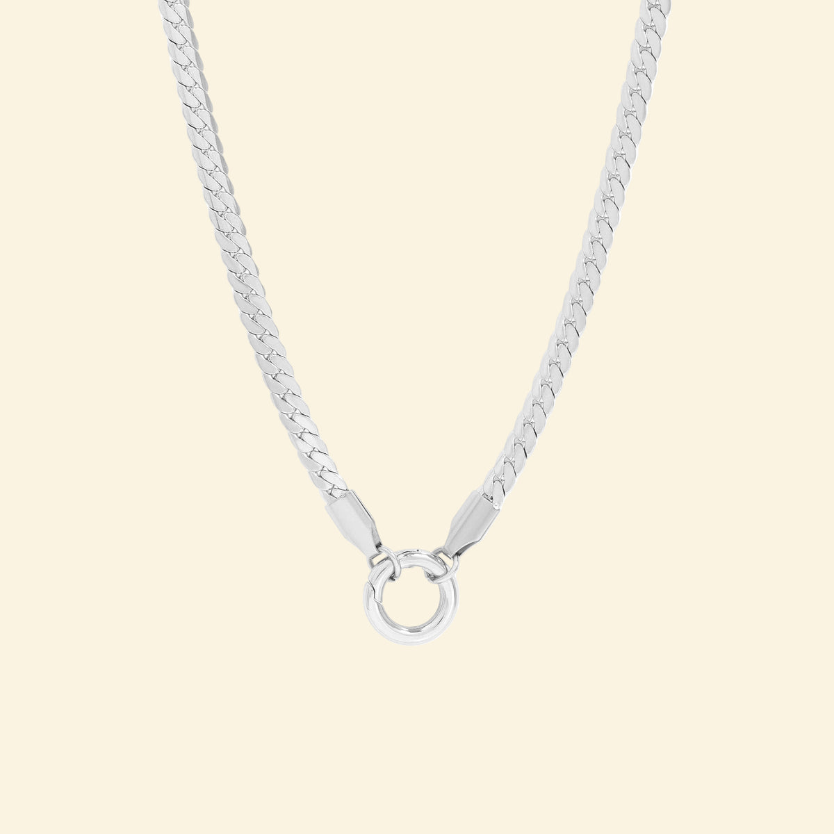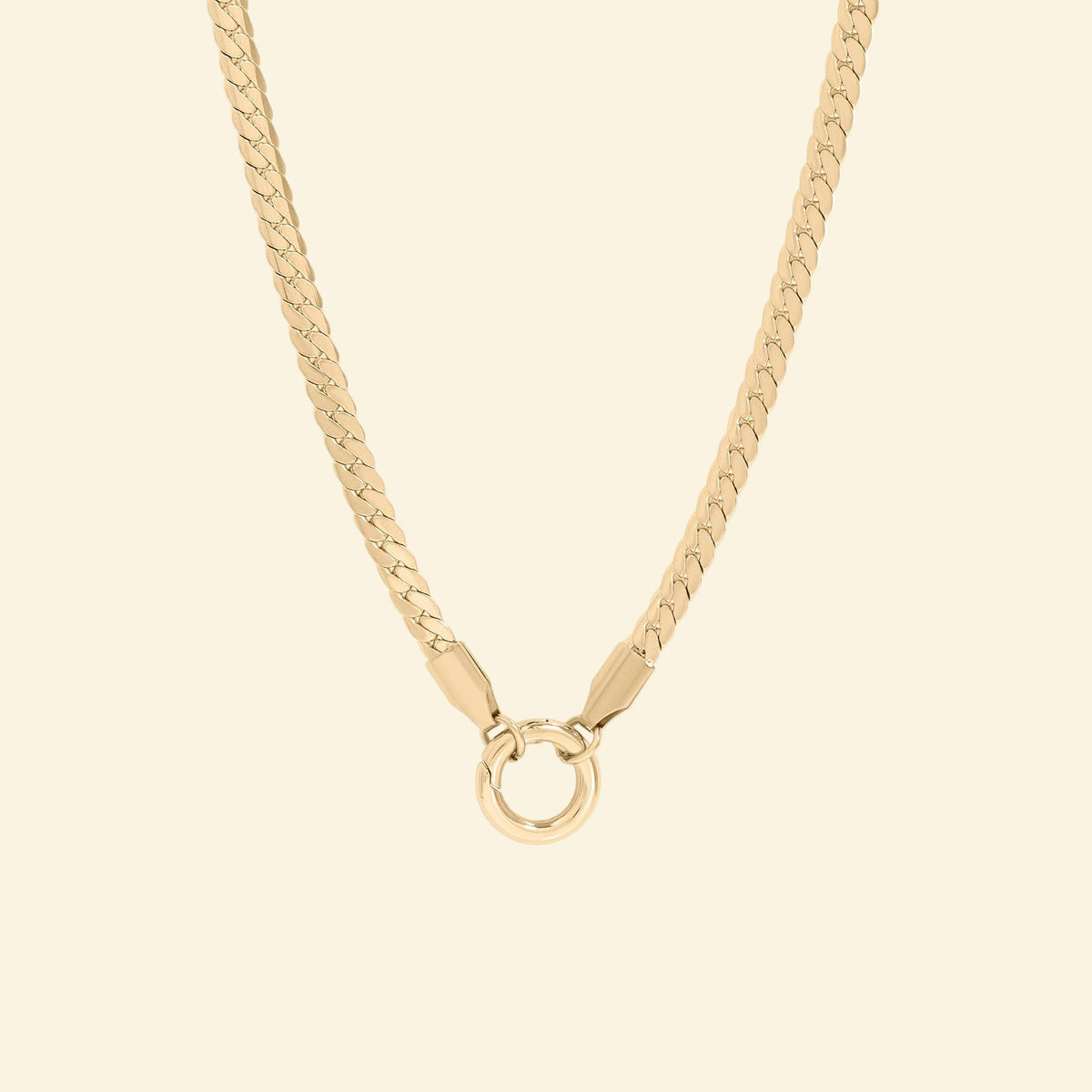 This statement making chain necklace features a sleek charm holder clasp that lets customers easily add, swap, or layer their favorite charms, creating a look that's uniquely theirs. Its bold curb design makes it perfect for stacking, layering, or wearing solo as a standout piece.