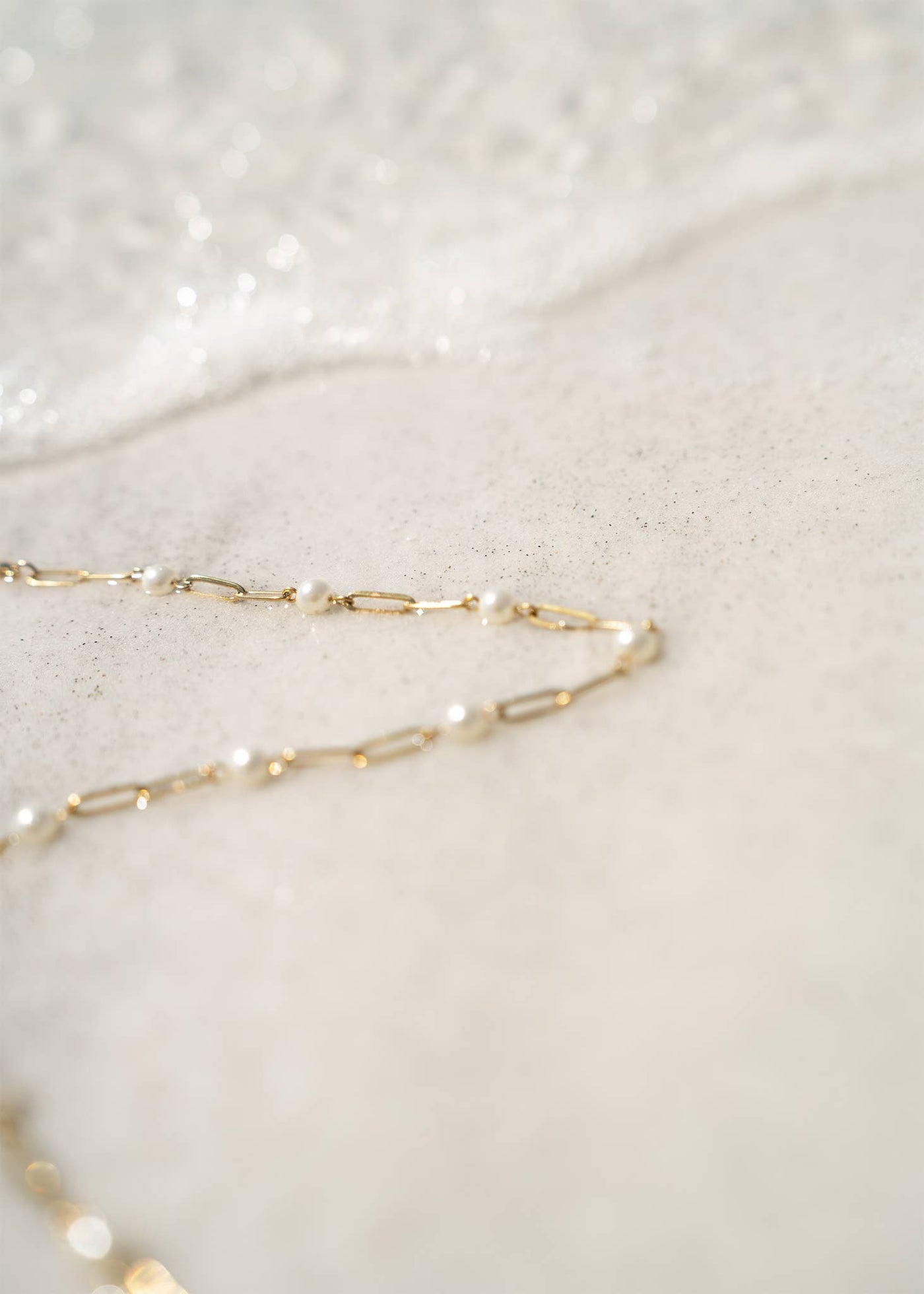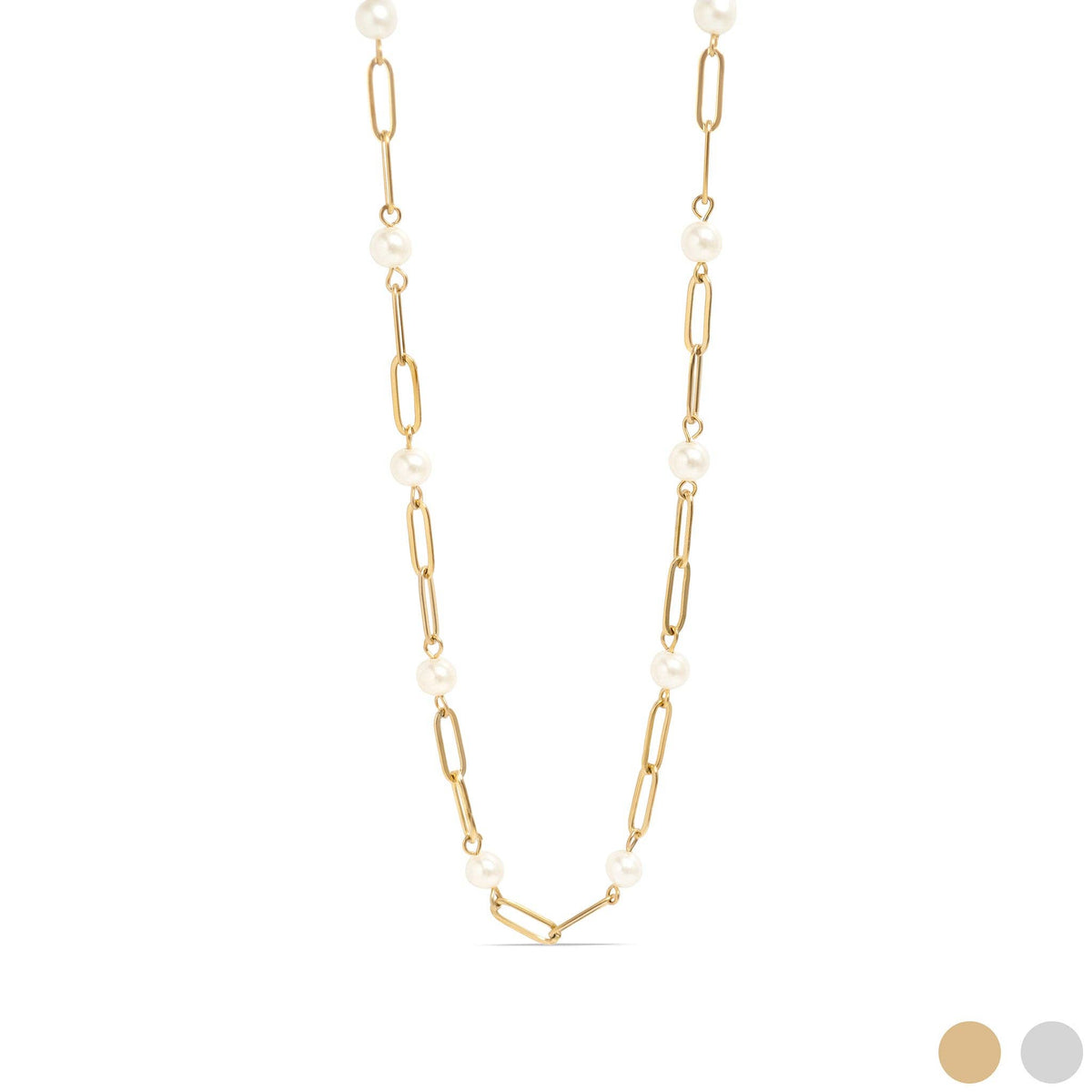 Our best selling paperclip chain just got an upgrade! The Paperclip chain pearl station necklace is a stunning new design for 2025 that is sure to become a new customer favorite. Featuring a paperclip chain design, this necklace is punctuated with sparkling glass pearl stations that create a balanced and elegant aesthetic. Crafted from high-quality stainless steel, it offers both durability and a brilliant, tarnish-resistant finish. • Waterproof, non-tarnish, hypoallergenic • Available in Stainless Steel and premium 18K Gold PVD • This necklace pairs well with similar styles in our Paperclip Collection! The combination of the contemporary paperclip chain and pearls provides a versatile statement of everyday luxury. Light and comfortable, it’s perfect for layering or wearing solo. Same day shipping from Ocean View, DE.