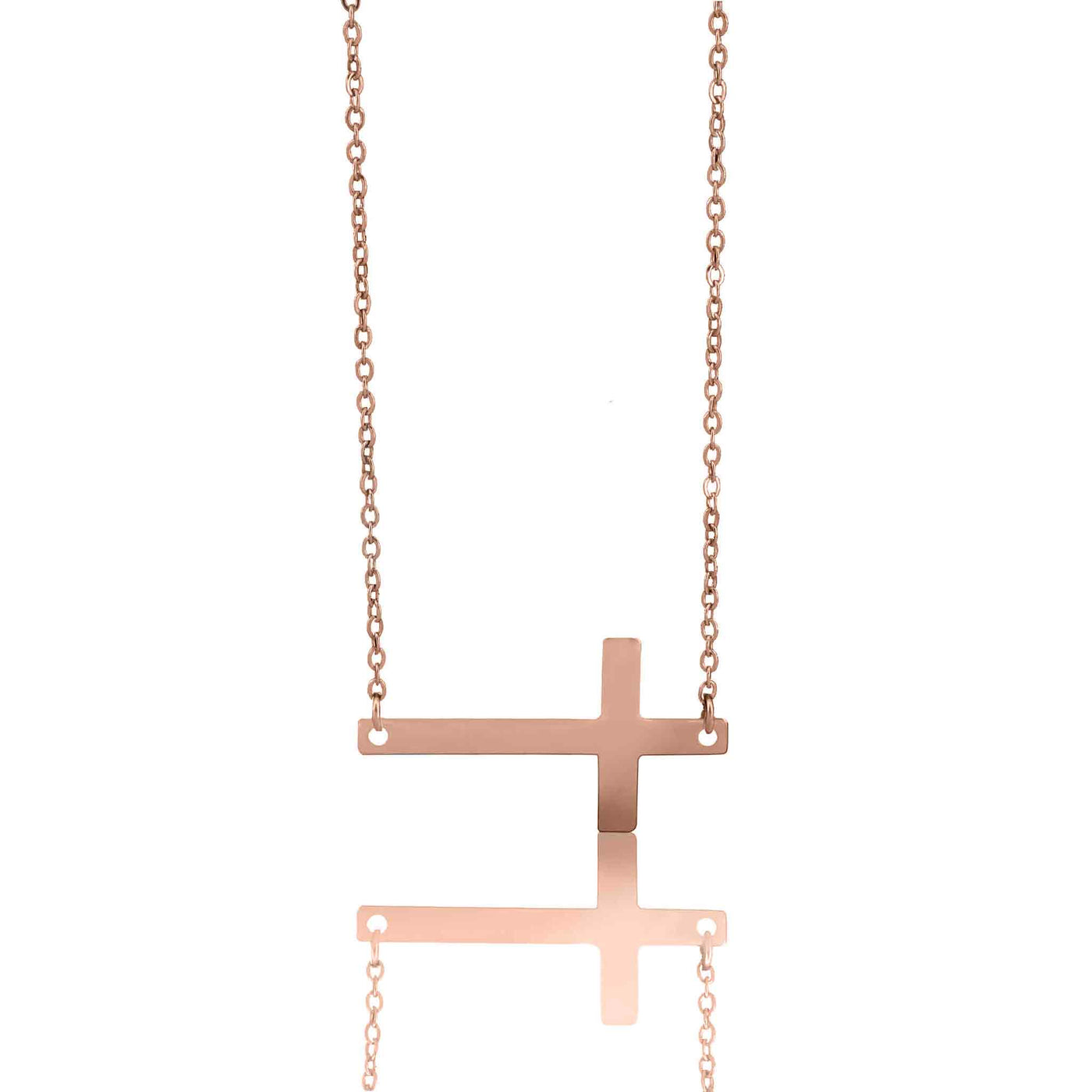 Our horizontal cross necklace is available in a variety of color options; silver, gold, rose gold, rainbow, and black. Made with non-tarnish, hypoallergenic, surgical grade 316L stainless steel that will never turn your customer's skin green!