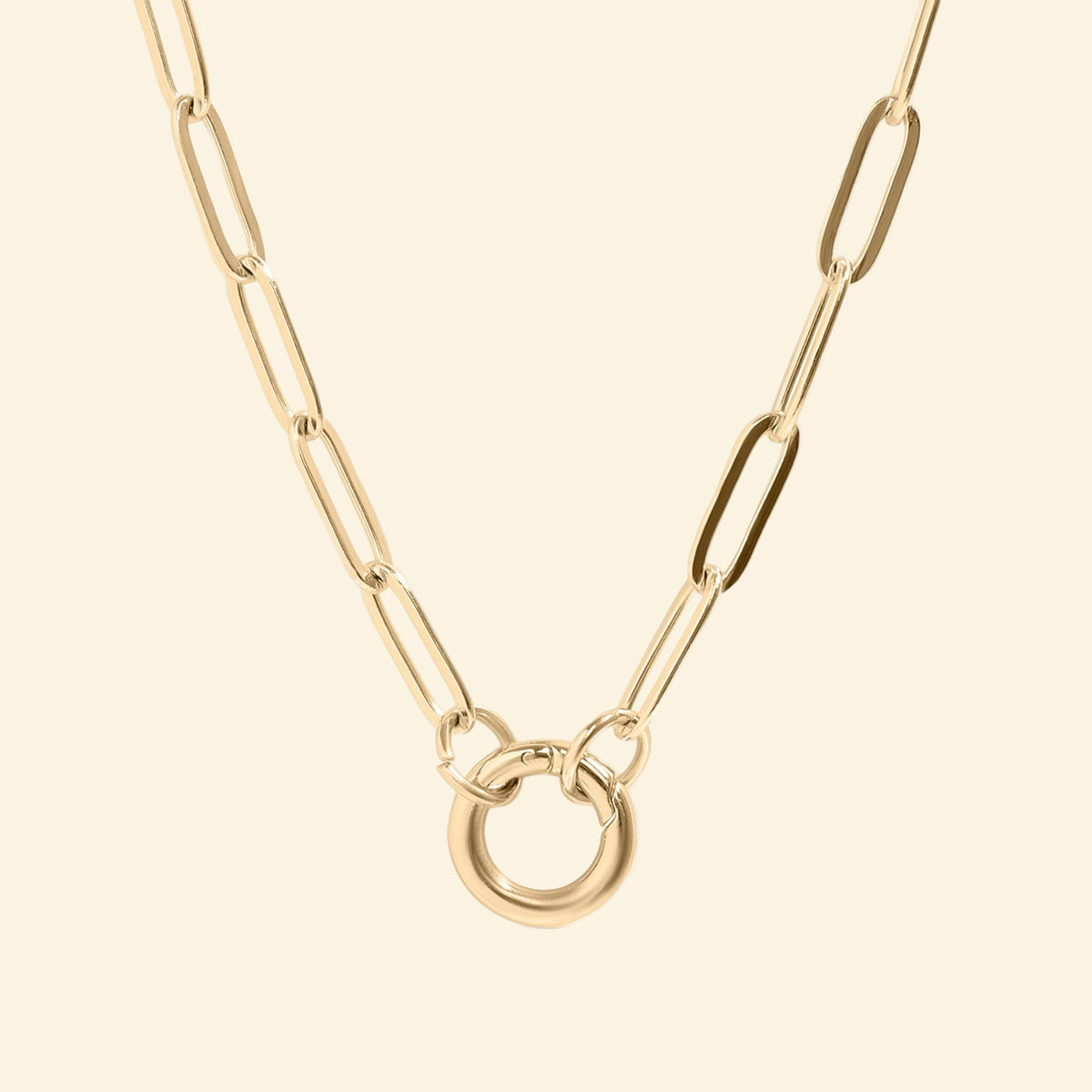 Trending! The perfect necklace for charms, the Paperclip Carabiner Charm Holder Necklace is a new must-have for your collection. This effortlessly stunning necklace features one of our most popular chain styles, the paperclip chain, with an attached circle carabiner charm holder. The easy-to-open charm keeper makes adding charms to this necklace not only easy, but stylish!